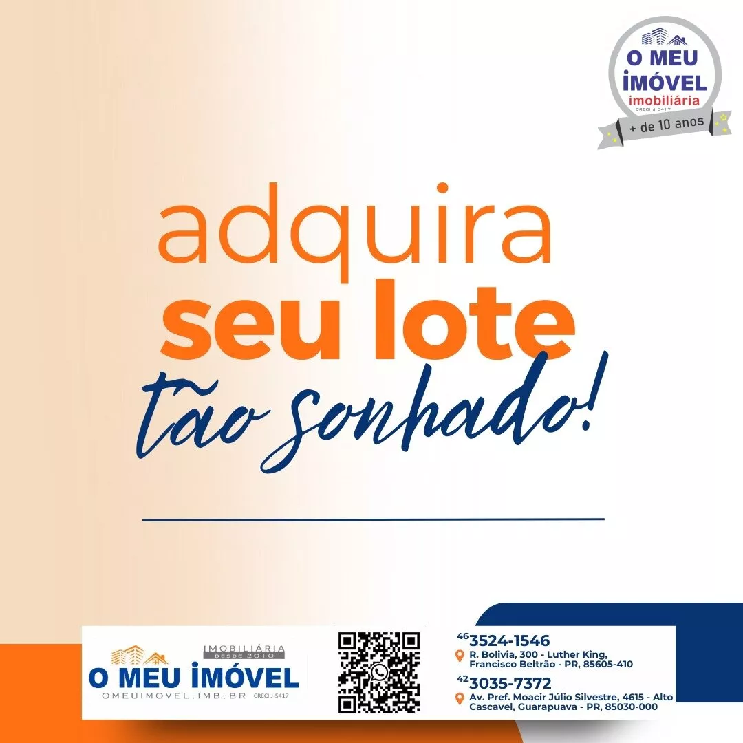 ✨ Um lote incrível com 300m², perfeito para quem busca espaço, conforto e valorização. Localizado no coração do Loteamento Pedra Branca, na divisa estratégica entre Marmeleiro e Francisco Beltrão!